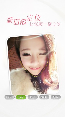 ▲智能美形:瘦脸、瘦身想瘦哪就瘦哪!一键变瓜子脸、鹅蛋脸.... 大眼睛、去眼袋、加亮眼睛、高鼻梁等都可以智能实现;