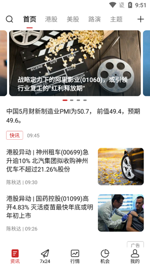 2、快讯频道:覆盖宏观、港股市场、港股公告、港股异动、港股研报以及美股等相关频道,充分满足用户对于港股及海外市场实时信息需求。