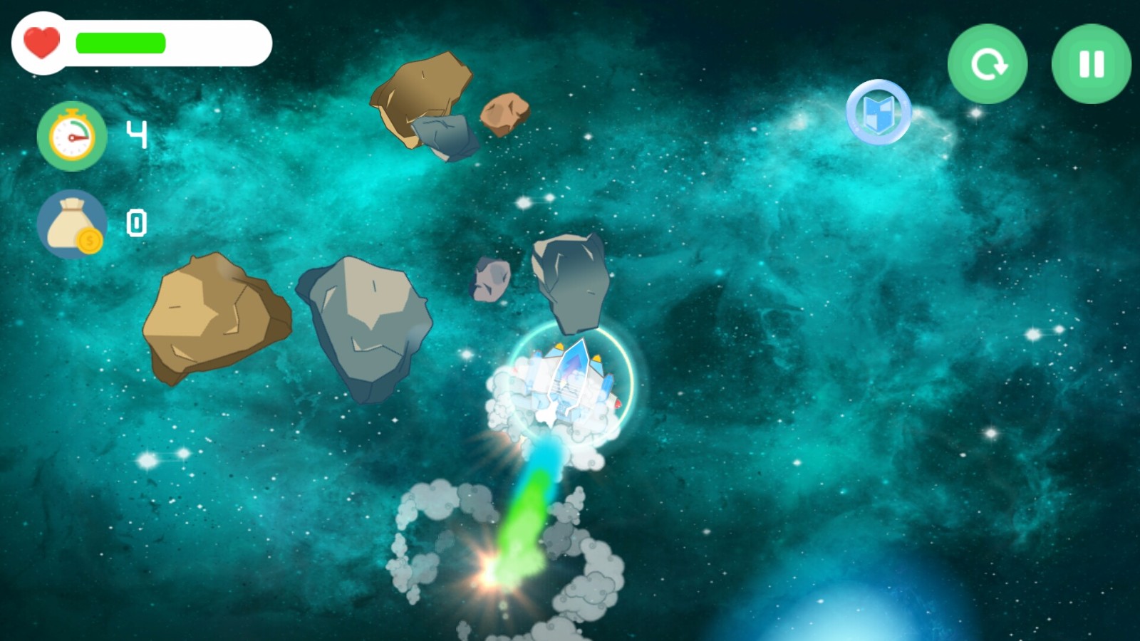 3、尽量避开密集的陨石,而且能够吃到的道具尽量吃到,吃了之后能够撞碎陨石的,摆脱困境!