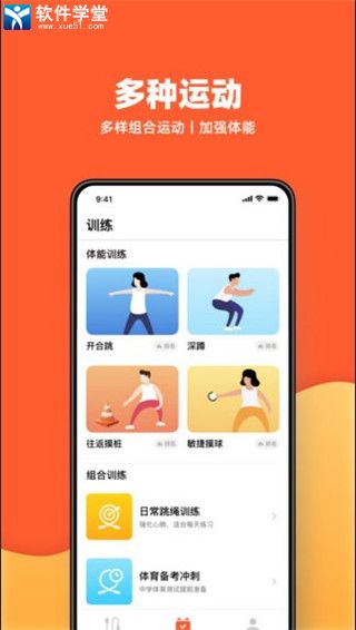 如果您想训练自身的体能,您可以选择开合跳、全身运动、深蹲、敏捷摸球、往返摸桩、左右横跳等;当然您还可以选择多种组合训练,满足您的不同需求。