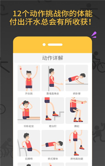 2、简单省时:每天只需七分钟,无需任何健身设备器材,动作基础易学,在家即可完成。