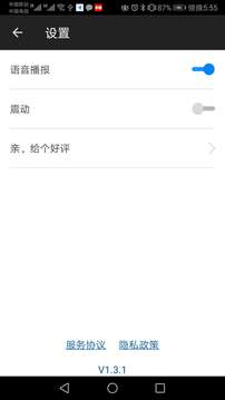 3.设置中心提供多种设置工具,包括语音播报设置和振动设置两个不同的设置栏目;