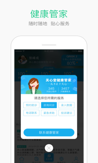 关心堂去广告版提供家庭医生服务、在线问诊和健康管理,满足用户的医疗需求。身体有问题不想要去医院,大家可以在线上找医生问诊,快来下载关心堂去广告版,这是一款基于互联网预约看病的软件。患者可以用本软件进行在线病情咨询网上看病,也可以在线预约挂号到医院看病,省去了大病小病都要去医院挂号的繁琐。