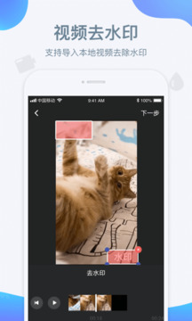 该软件是一款非常实用的能够去水印的专用的软件,轻松帮你的搞定的照片上的水印的手机软件名, 同样的也能够为你需要的发布的照片中添加专属于自己的特色logo,非常的实用,可以给视频加上你专属的文字或图片水印的软件。
