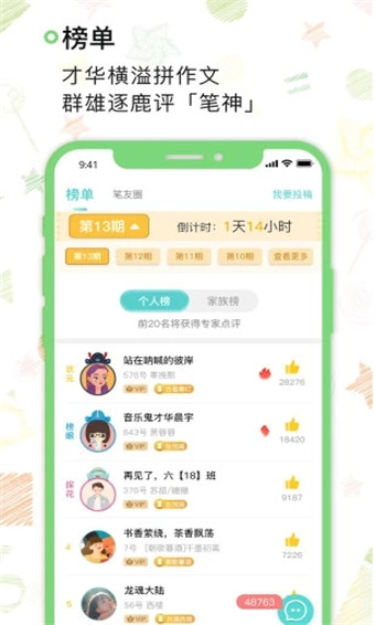 1、【投稿排行榜】参与每周投稿活动,你的作文也能登上榜首,被数万小伙伴看到点赞!还有机会获得笔神老师专业点评哦。