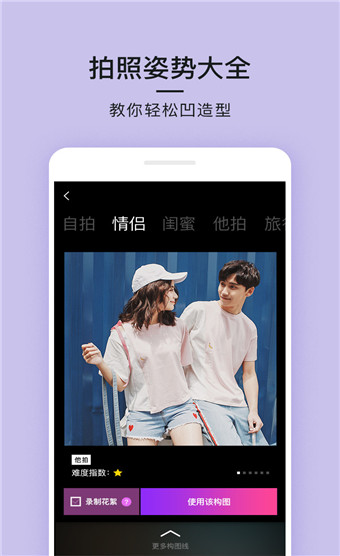 自由调整照片的透明度和位置,创造出神奇的照片叠加效果!21相机手机版,海量的特效效果、精美模板等,让你能够轻松制作出一张精美的照片。还添加了一些新的功能,包括像红人构图、影调滤镜,智能美颜,脸型微调等专业拍摄功能,能够与支持用户脸部高级修整包括美肤、瘦脸、亮眼、祛眼袋、瘦鼻等基础颜值微调。