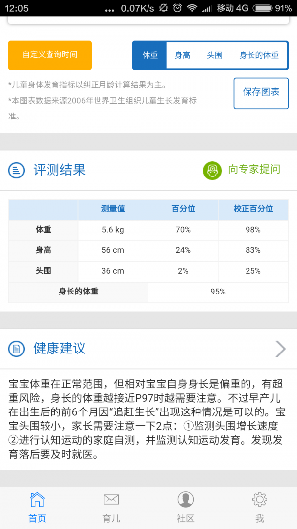 1.成长评测——输入宝宝的生长记录,获得完整的生长及追赶曲线