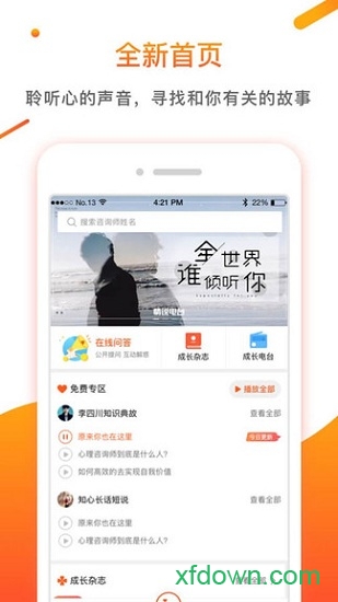 2.心理咨询:与心理咨询师时时在线交流,免费咨询,还可与咨询师相约,进行线下面对面交流,进一步解决问题。