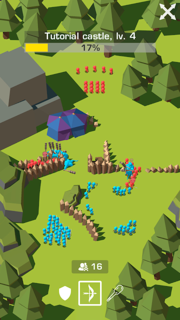 卡通画风、塔防玩法的策略休闲游戏。玩家在游戏中就是要派出自己的火柴人军团去进攻敌人城堡,善于利用兵种相互去派出不同类型的火柴人小兵;摧毁地方的城堡游戏就算胜利!
