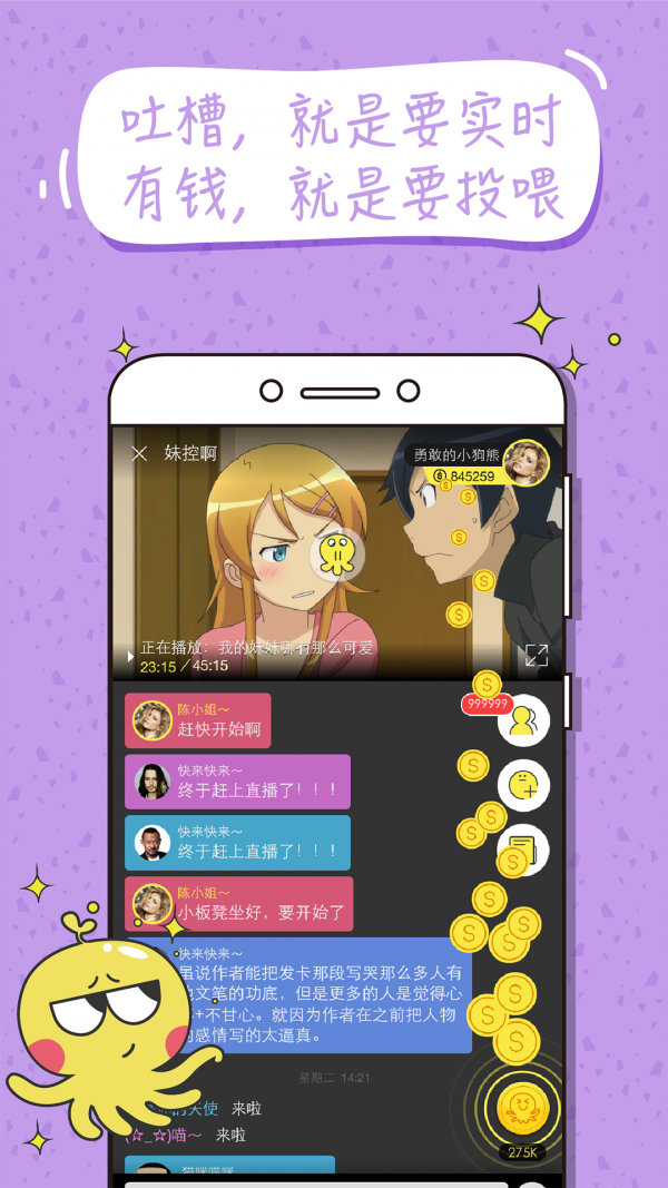 实时吐槽---我们的放映厅吐槽是实时的!根剧透说分手!还可以随手投喂房主,互动聊天!