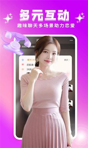1、实时为大家匹配,快速找到更合适的伴侣,和喜欢的人在线聊天约会。