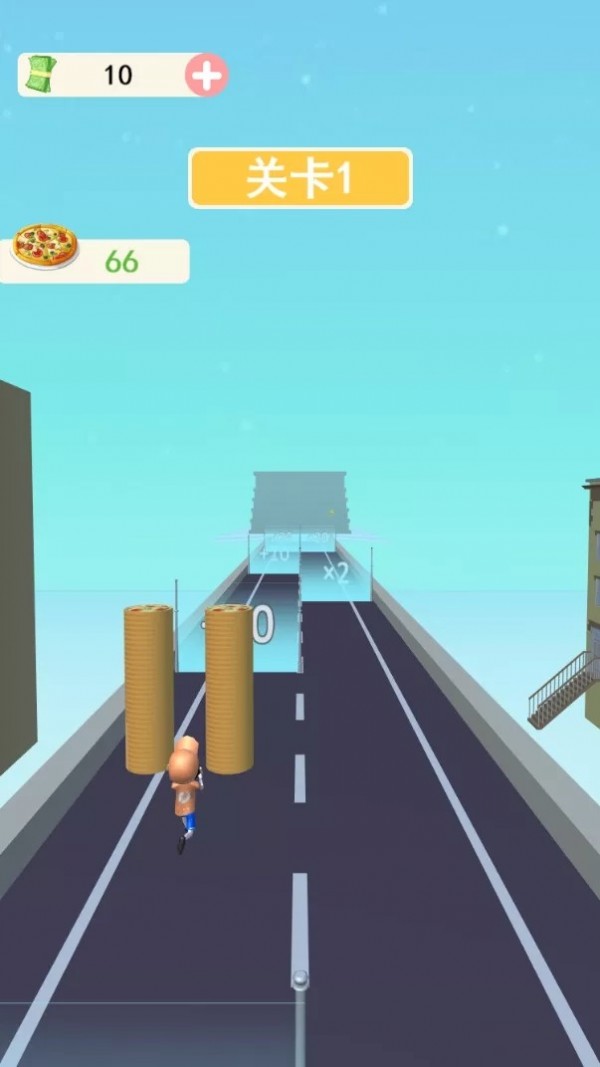 1、游戏采用了简单的画风,控制外卖小哥在不同的关卡中冒险,在关卡中收集披萨;