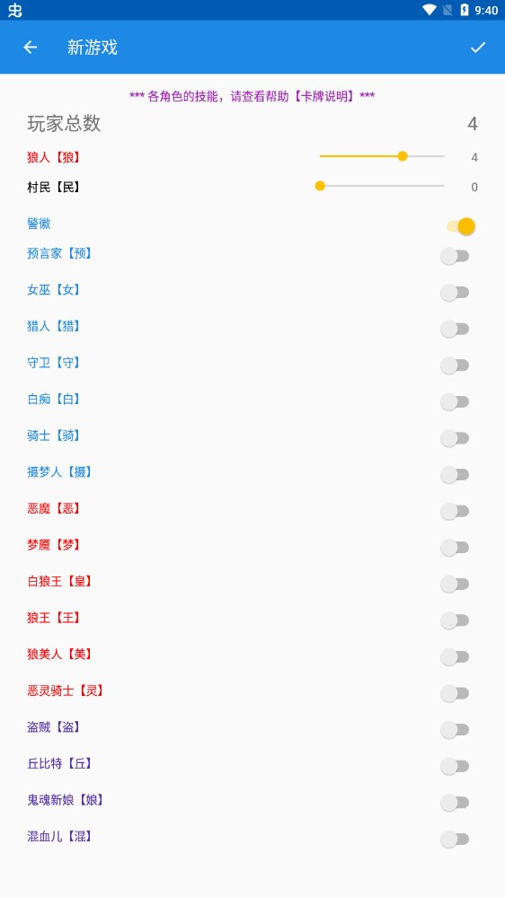 4.高度自由,玩家可以自定义游戏配置,设置多少人或者添加多少角色,由于55个角色玩法太多,所以选择使用自定义模式的时候需要玩家自己主持游戏。