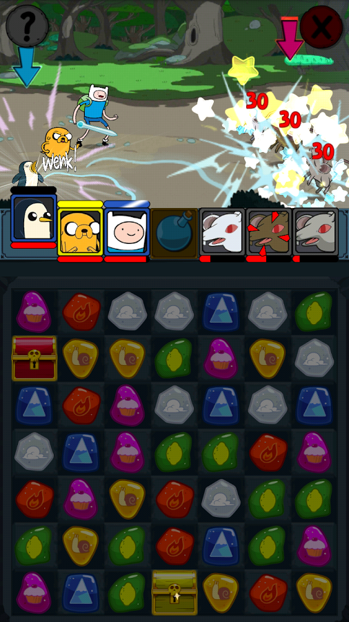 《冒险活宝解谜任务》是根据美国人气动画改编的一款三消玩法的RPG游戏,游戏将再现动画中精彩内容,玩家将追随各位主角一起冒险,利用独特的消除来战斗,并且解开各种谜题。