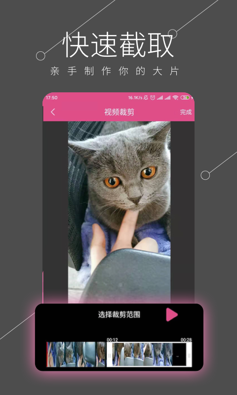 全能视频剪辑剪辑剪切视频到所需要的长度,导出高清视频,简单易用的视频剪辑软件,拥有海量的视频特效和各种各样的特色主题,可以让使用拥有大片既视感;精选了各种热门的音乐,让你轻松的走在时尚前沿,轻轻松松就能帮助你完成视频编辑制作,全能视频剪辑app还拥有全新的智能滤镜美颜系统,可以开启美颜滤镜特效,自动识别人脸头像。