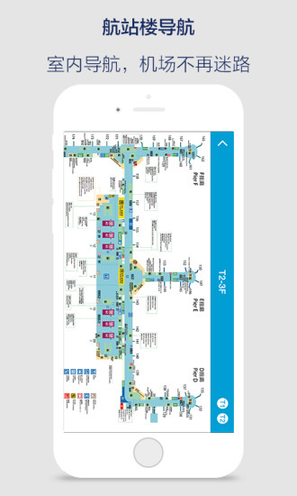 3、机场导航:只需扫描身边的二维码并选择目的地即可完成精准的航站楼室内导航;