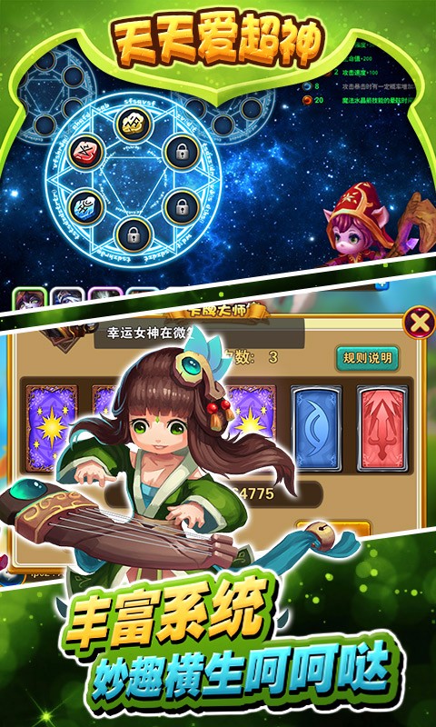 3D动作卡牌手游《天天爱超神》,完全颠覆了以往的卡牌游戏玩法,游戏加入独创的玩法,抛弃传统卡牌回合制战斗,以PVP战斗和QTE的战斗操作来展现畅快的战斗体验,让你感受“你不是一个人在战斗”,也真正体会到“与人斗其乐无穷”。赶紧召唤英雄帮你冲锋陷阵,引领你走向胜利吧!