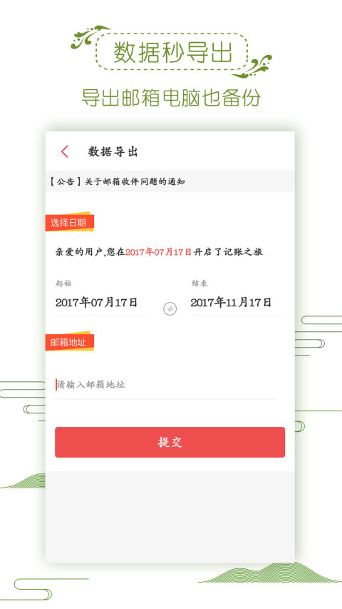 账单导出至邮箱,随时查看随手账本