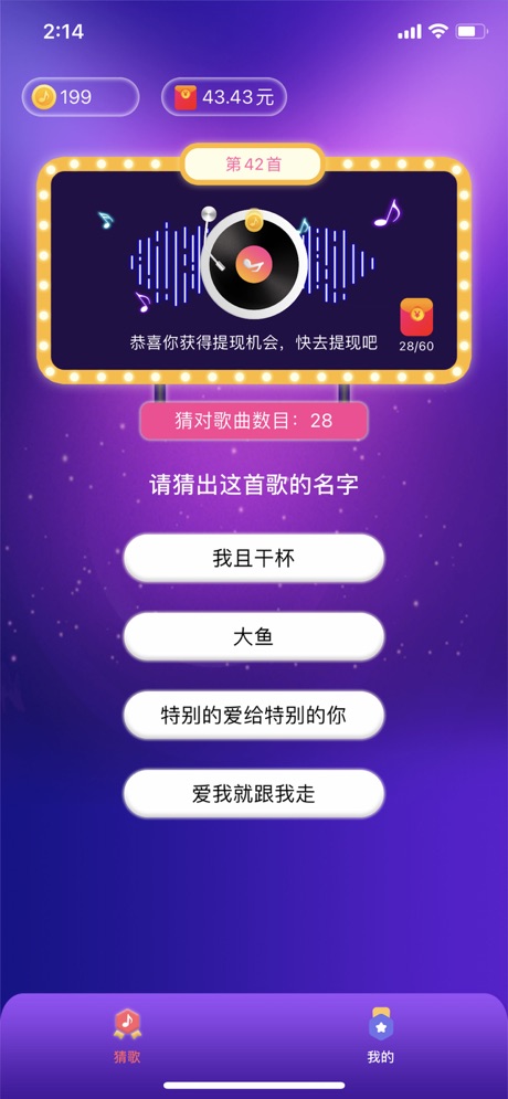 2、只要打对所有的问题就能领取一个超级大的红包,轻轻松松就可以让自己成为音乐达人