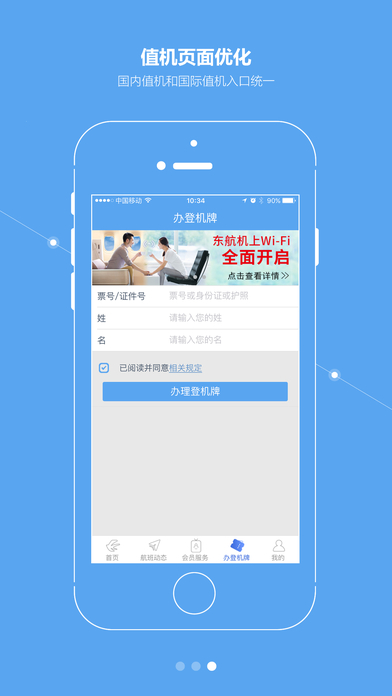 手机值机——手机办理自助乘机手续,个性化选座,无需到机场排队等候。