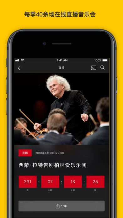 收听收看古典音乐界最优秀的指挥家、独奏家及歌唱家与柏林爱乐乐团合作的音乐会——直播/点播两相宜。