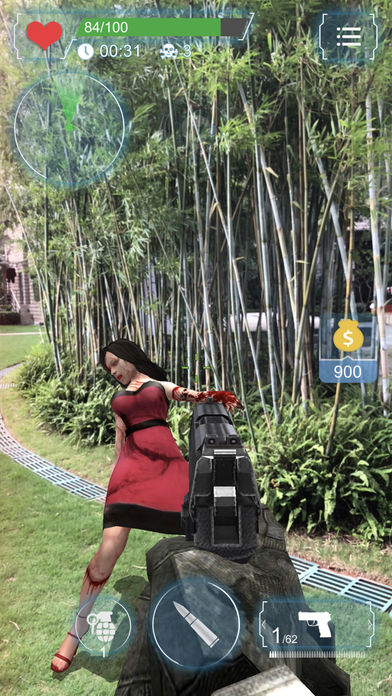 实景和3D僵尸的结合,就是AR增强现实“虚实融合”的特点。这带来传统僵尸无法提供的一个体验:高度的沉浸感。玩家通过手机镜头,将自己周围的环境变成僵尸战斗场所,可以随意走动,近距离走进僵尸或者跑动躲开僵尸。仿佛真的进入到了末日世界,投身于和僵尸的战斗中。恍惚之间,玩家会觉得自己就是《行尸走肉》中的瑞克。 这就是AR的神奇之处,游戏不再局限于手机屏幕的方寸之间,而是整个世界,不再局限于虚拟数字世界中,而是虚拟游戏人物和现实世界的完美融合。当然,如果结合实体的蓝牙玩具枪和AR头盔,沉浸感会再高一个等级。