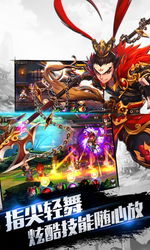 一款以三国为题材的Q版卡牌对战类游戏,结合经典卡牌与角色扮演玩法,其独特的连斩系统,使玩家轻松上手的同时,获得超一流的打击感和爽快感。游戏打破固有的魏、蜀、吴三国鼎立的阵营,三国名将统统可以一起上阵战斗!