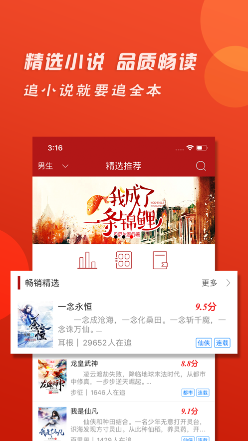 追追全本小说ios会员版一款非常受欢迎的小说阅读软件,追追全本小说app简直就是小说迷的福利天堂,这里有百万小说资源,每天全网第一时间更新小说章节,软件每天智能的为你推荐好看的小说书籍,让你和书荒说拜拜。喜欢的就不要错过了,欢迎下载体验吧。
