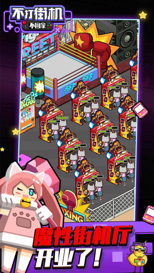 回归那个年代的街机游戏,享受最原始的游戏感受。不打街机不回家ios国际服版一款像素风的模拟街机游戏,而且在游戏中,玩家需要经营自己的街机游戏厅,在享受游戏的同时,玩家可以回忆起自己快乐的童年,吸引更多的客人来玩,并且购买了各种街机游戏设备供客户回忆和体验,也会在游戏期间带来各种实惠,玩家需要不断赚钱,扩大店铺规模。
