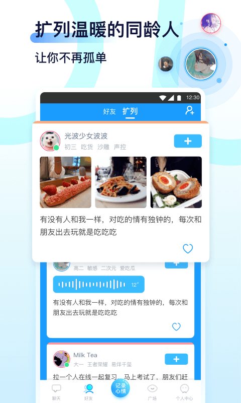 2、扩列好友列表。扩列温暖的同龄人,和小伙伴发现更多共鸣,让你不再孤单。