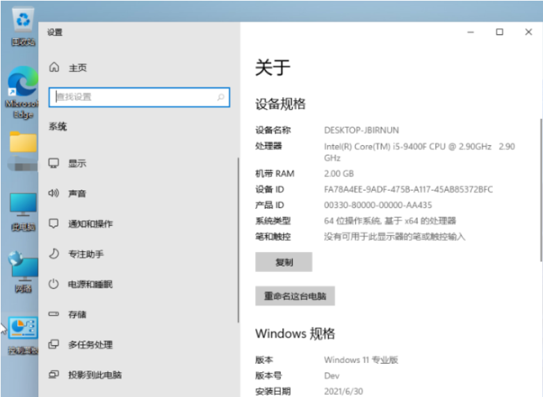 2、在打开的属性中,就可以直观地查看处理器(CPU)、内存等核心硬件信息。