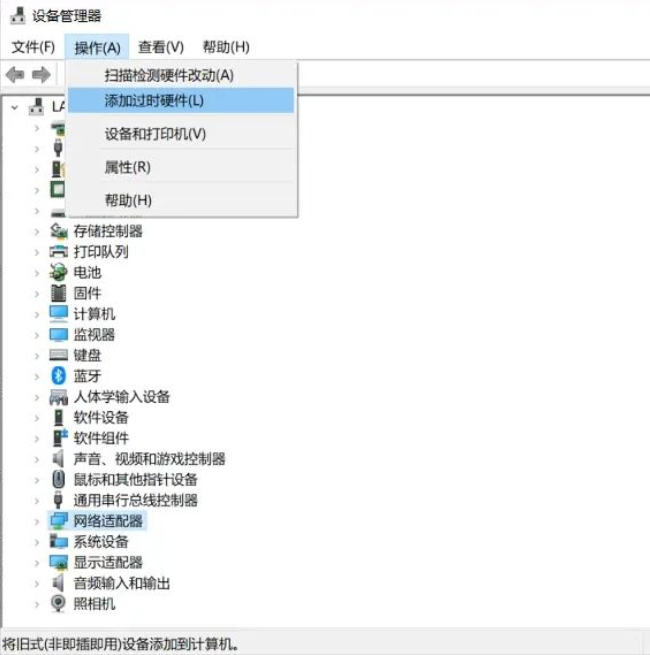 添加硬件向导,手动选择安装硬件,下拉列表选择网络适配器,厂商选Microsoft,型号为Microsoft KM-TEST 环回适配器。安装硬件之后,查看网络适配器。
